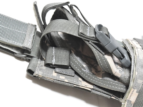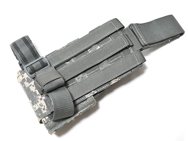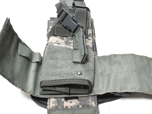米軍実物、LBT(ロンドンブリッジトレーディング)製、ACUカラーのユニバーサルホルスターです。パーツの向きを変えることにより左右兼用で使用出来ます。背面はMOLLEクリップが付いているのでMOLLEウェビングが付いたアーマーやベルト、レッグパネルなどに取り付けが可能です。