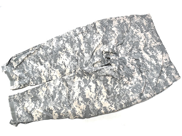 米軍実物、主に陸軍で使用されているECWCS GEN3 ACUカラーのゴアテックスパンツです。防水性の高いGore-Texを使用しており、ウエストはゴムで調節可能、両サイドポケットはインナーにアクセスするために貫通式となります。レイヤリングより防寒性を高めることができ、単体でもレインウェアとして活用いただけます。登山やアウトドア、ツーリングなどの防寒用具・雨具としておすすめ1着です。※ゴアテックスの表記はありませんが、同等の素材が使用されています。