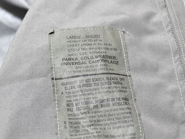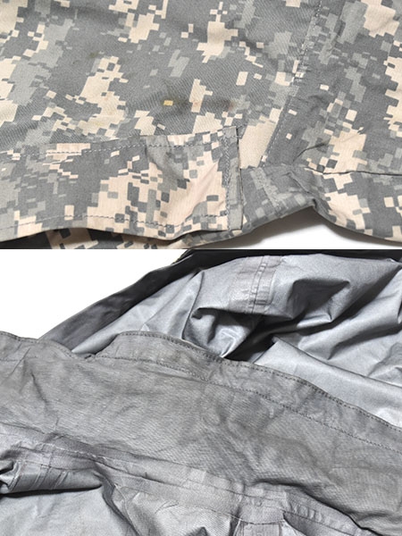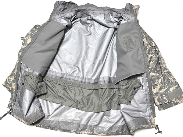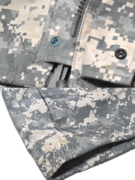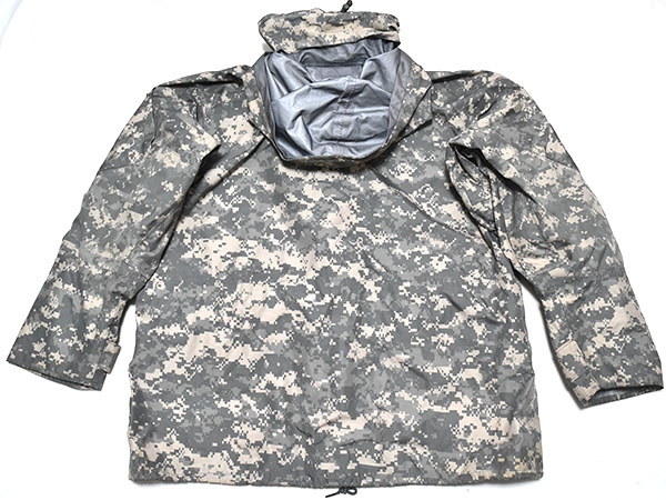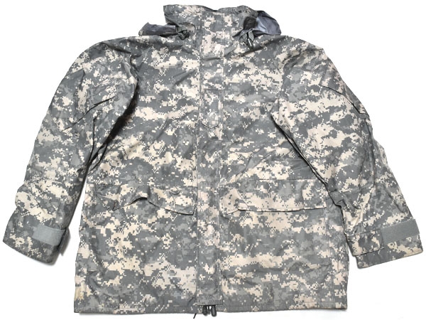 米軍実物、陸軍で使用されているACUカラーのECWCS (Extreme Cold Weather Clothing System) GEN2のゴアテックスパーカーです。従来からの厚手の素材で防水性・耐久性の高い素材を使用しています。フードは襟に収納が可能で、脇下には蒸れを軽減するためのベンチレーションが付いており、フロントはダブルジッパーとなります。ポケットは両肩と腹部に各2つずつ付いているので収納に大変役立ちます。腰にはドローコードが付いているのでウエスト周りの調整が可能となっています。レイヤリングにより防寒性を高めることができ、冬場のアウターとして、または登山やアウトドア、ツーリングなどにも最適です。※ゴアテックスの表記はありませんが同等の性能の素材が使用されています。