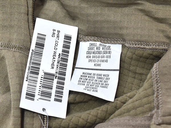 米軍実物、陸軍で使用されている最新ブラウンカラーのLEVEL2コールドウェザーグリッドフリースシャツとパンツのセットです。裏地はワッフルと呼ばれる非常に肌触りが良く、防寒性の高い生地を使用しています。