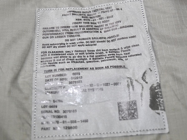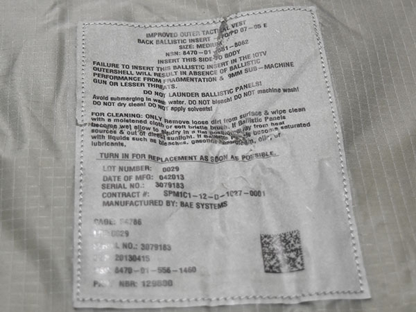 米軍実物、IOTV用ソフトアーマーです。前後の2枚セット。