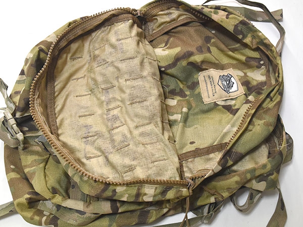 米軍実物、Bulldog Tactical Equipment製、詳細不明のバッグです。大きさは3DAY程度で外側にジッパーポケットが付いています。ストラップは格子状になっているので、背負うというより何かに取り付ける仕組みになっているようです