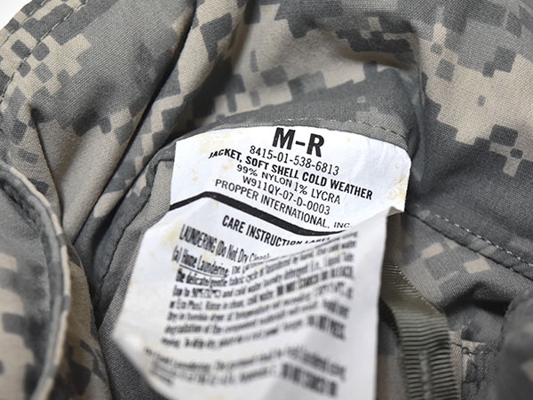 米軍実物、陸軍で使用されているマルチカムカラーのECWCS(Extreme Cold Weather Clothing System) GEN3 LEVEL5 ソフトシェルジャケットです。フードは襟に収納可能で、脇下には蒸れを軽減するためのベンチレーション、ポケットは腹部に2つ、肩に2つ付いています。ECWCSの中で最も需要があり、撥水、防風、透湿性にも優れているので秋・冬・春と長期間で着用できます。BDUジャケットやフリースの上着としておすすめの1着です。