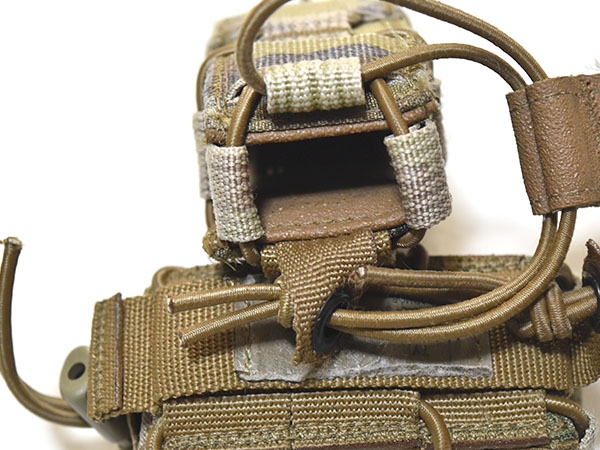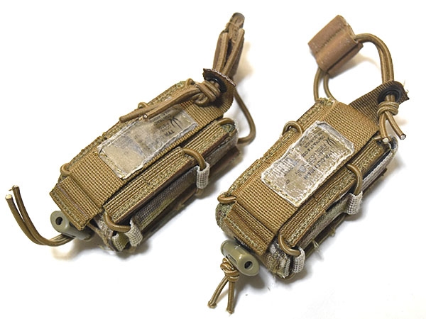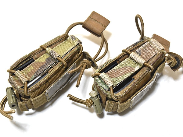 米軍実物、特殊部隊で使用されているTYR Tactical製、マルチカムカラーのCombat Adjustable ピストルマガジンポーチ2個セットです。様々な種類のマガジンを1本収納出来るようバンジーコードで調節可能。