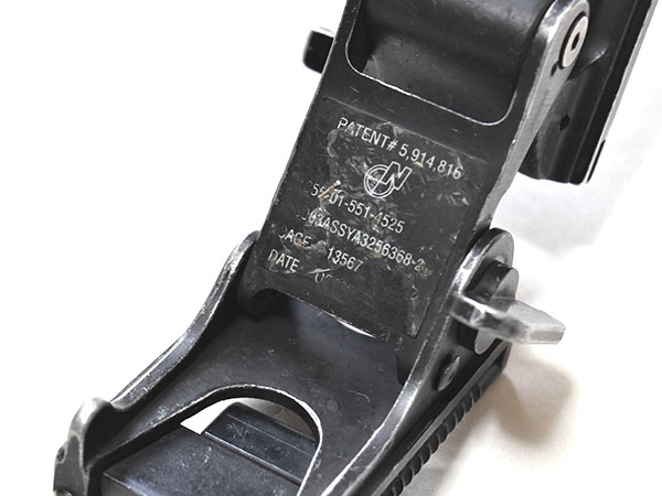 米軍実物、主に海兵隊・陸軍で使用されているNOROTOS製、RHINO NVGマウントです。ECH/ACH/LWHなどのヘルメットブラケットに取り付けが可能です。AN/PVS-7、AN/PVS-14用となります。