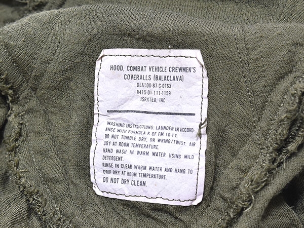 米軍実物、タンカースやエアクルーで使用されているODカラーのバラクラバです。