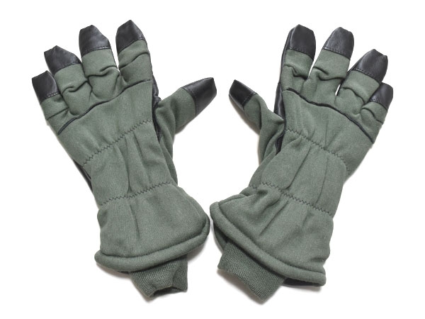 米軍実物、主に航空機搭乗員が使用する、HAU-15Pコールドウェザーグローブです。カラーはセージグリーン系です。レザーを使用した防寒性・耐久性の高いグローブです。
